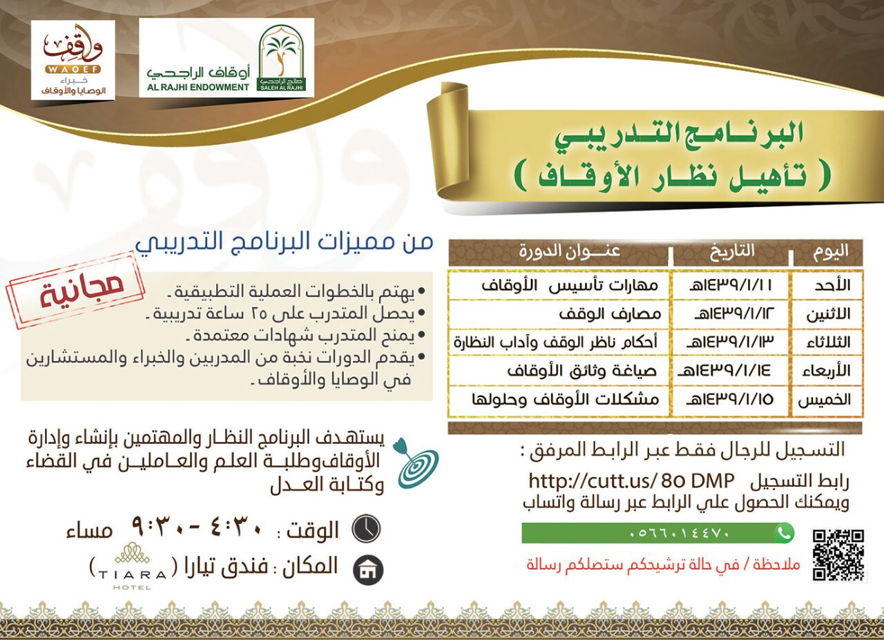 أرغب بالتسجيل في برنامج تأهيل نظار الاوقاف المقام في الفترة من 1438/1/11 الى يوم الخميس الموافق 1438/1/15