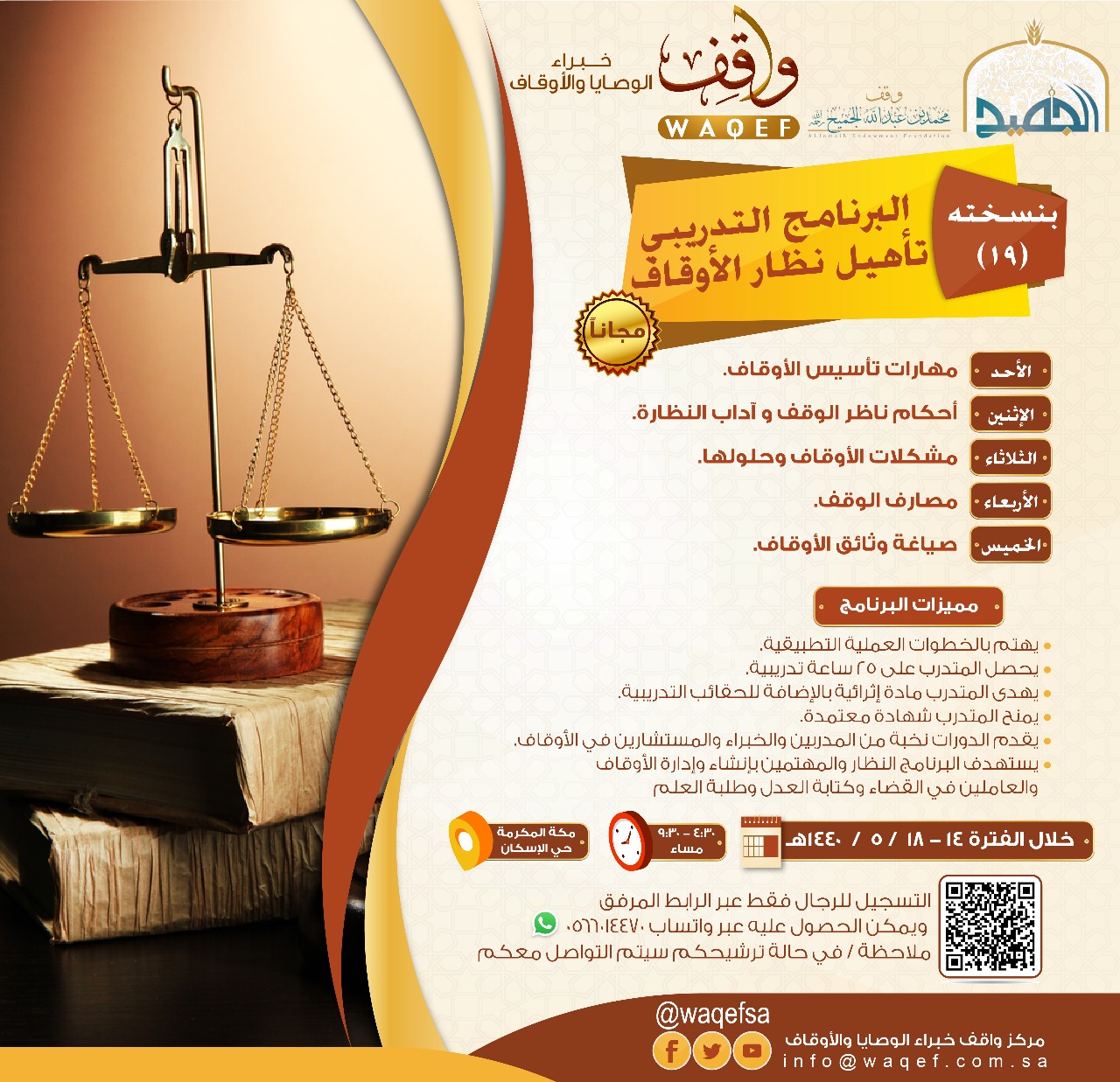 يعلن مركز واقف (خبراء الوصايا والأوقاف) عن إقامة الاصدار التاسع عشر من :