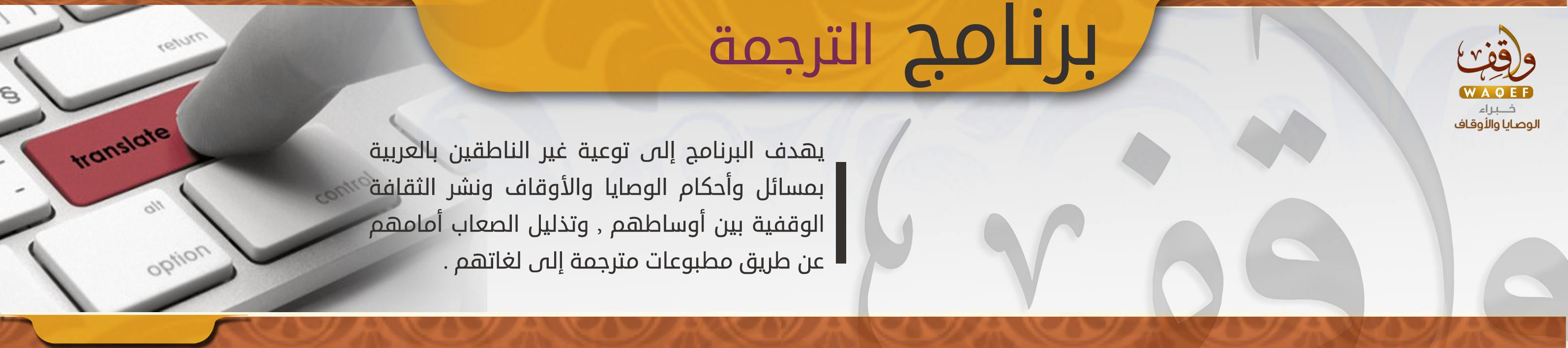 يهدف البرنامج إلى توعية غير الناطقين بالعربية بمسائل وأحكام الوصايا والأوقاف ونشر الثقافة الوقفية بين أوساطهم ، وتذليل الصعاب أمامهم عن طريق مطبوعات مترجمة إلى لغاتهم .