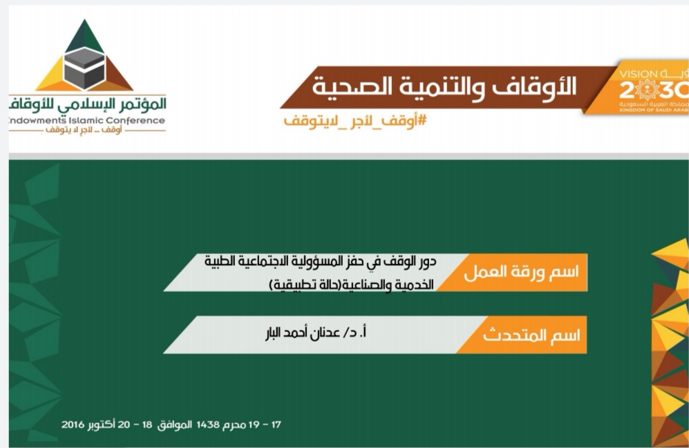 الوقف ودورة في حفز المسؤلية الاجتماعية الصحية الخدمية والصناعية د. عدنان البار